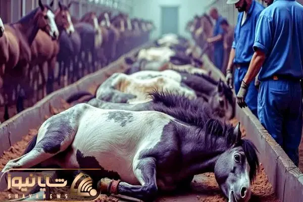 فرآوری اسب؛ اسب محتضر با تزریق پروار میکنه تو سلاخخونه چرخ میکنه برای کالباس