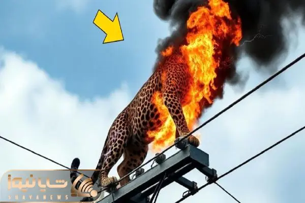 شاهکار حیات وحش؛ پلنگ شریر برای شکار طعمه بندبازی کرد رو سیم برق آتیش گرفت