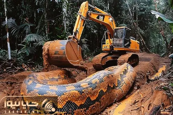 ابزارآلات غول پیکر؛ پیتون هرکول دد قلمبه شد وسط جاده گیر کرد بیل مکانیکی غول جمعش کرد