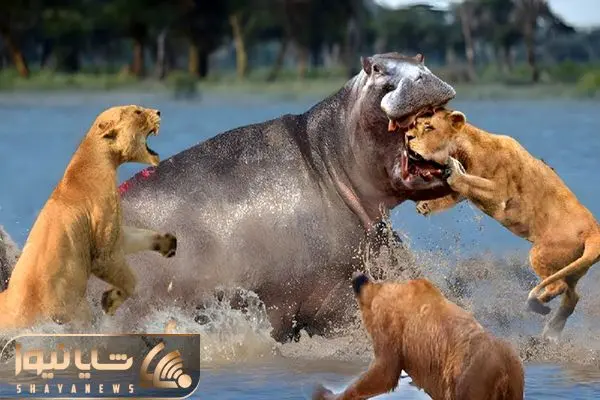 مستند حیات وحش / جدال مذبوحانه اسب آبی دهن گشاد و شیری که بازی را باخت