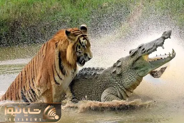 مسابقه حماسی حیات وحش / نبرد هیجان انگیز ببر با کروکودیل در رودخانه‌ گل آلود