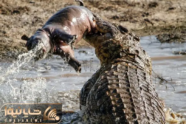 مستند حیات وحش / جدل تمساح و اسب آبی دهن گشاد بر سر بلع نوزاد اسب آبی