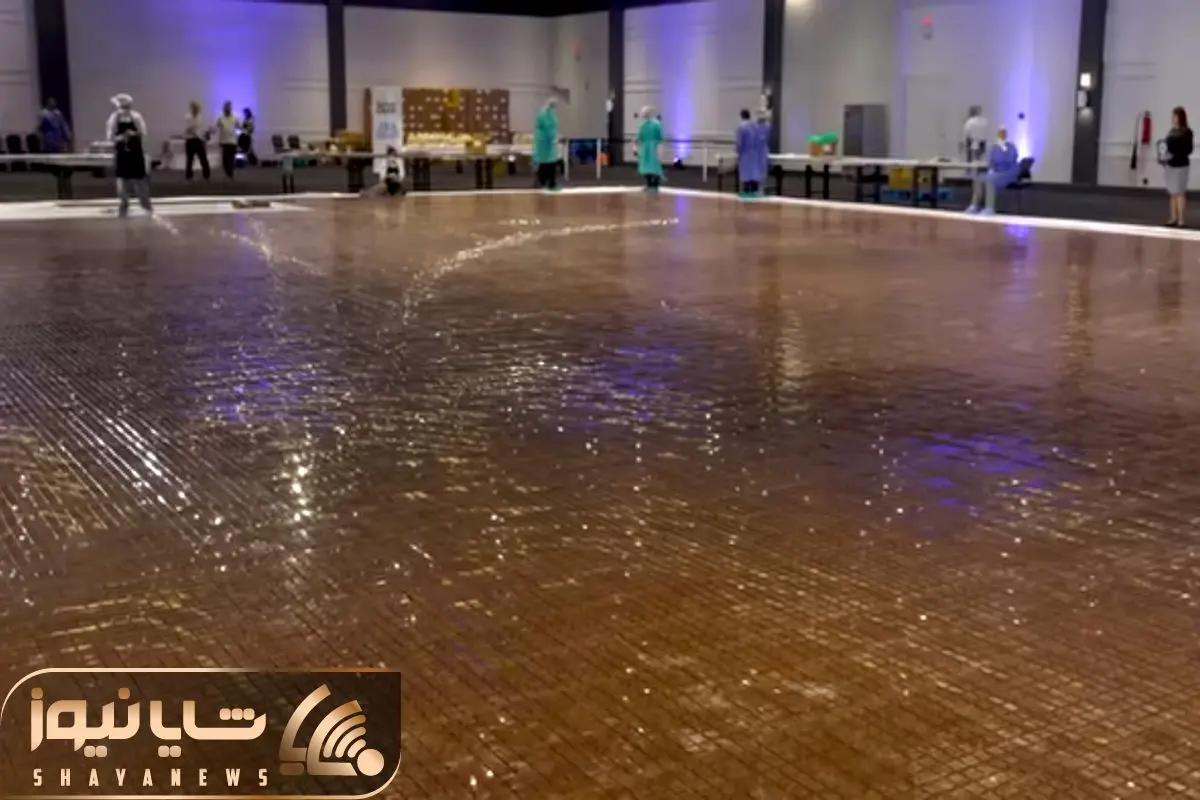 کارخانه تولید؛ کف یه سالن 1000 متری شکلات تخته ای پهن کردن دارن برش میزنن