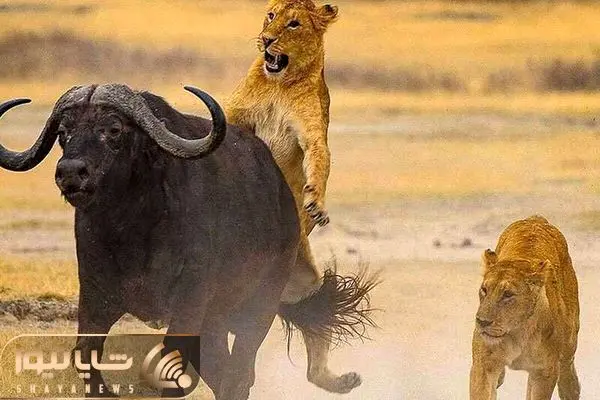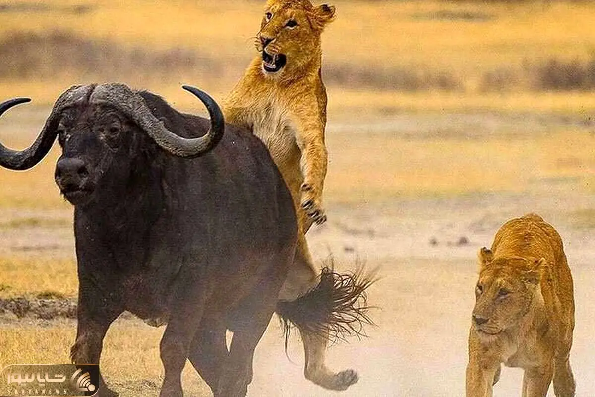 مستند حیات وحش؛شیرها گاو رو زده بودن زمین که رفیقاش اومدن با یه حرکت شاخ شیرو هوا کردن