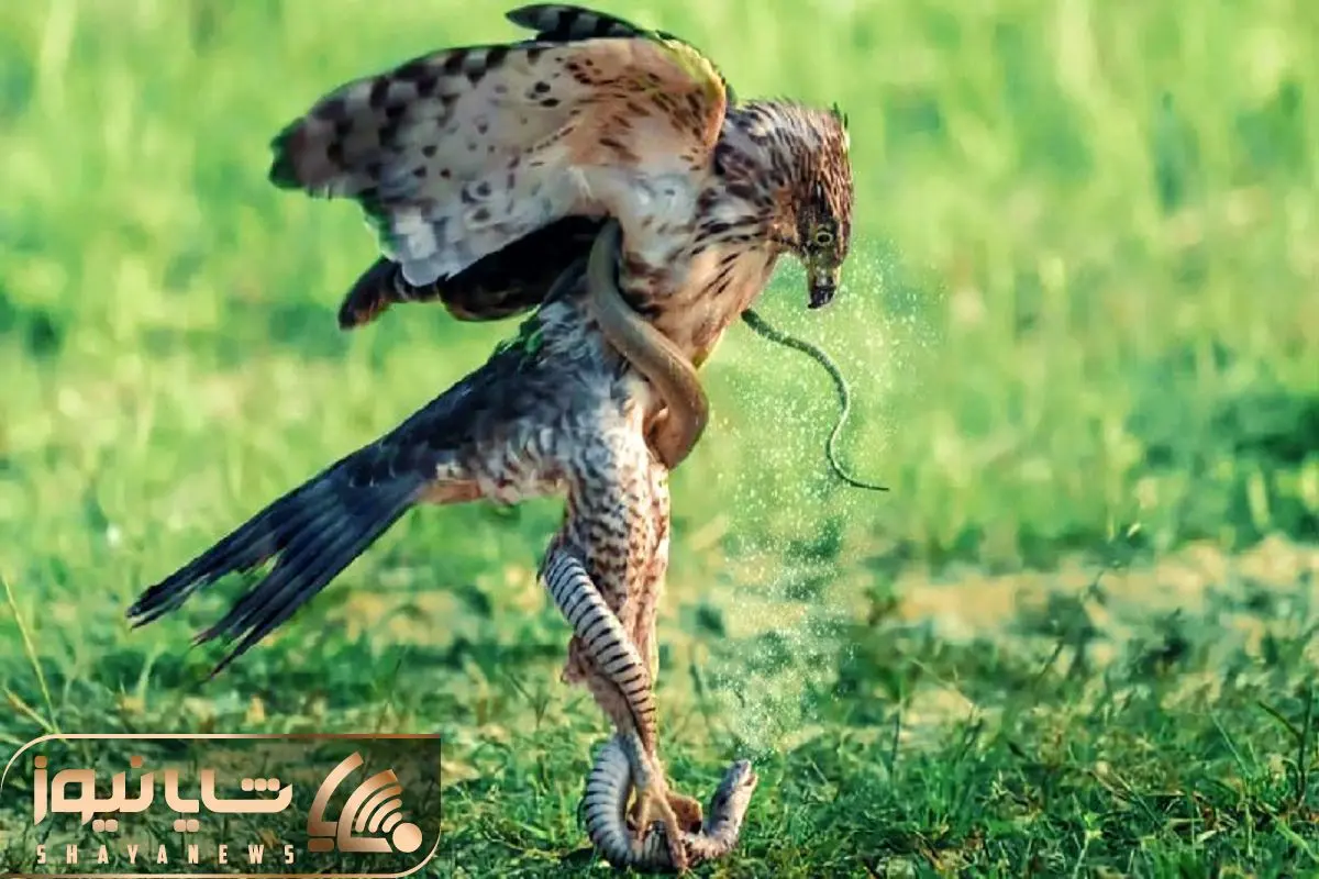 بدایع حیات وحش؛ عقاب ددمنش با شاهین دست به یکی کردن پیتون غول مثل رشته هورت کشیدن