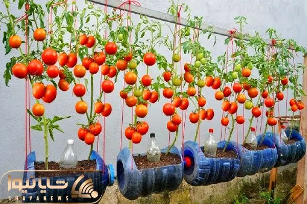 کشاورزی نوین؛ تو بطری های آب سردکن گوجه فرنگی کاشته آبیاریشم قطره ای کرده