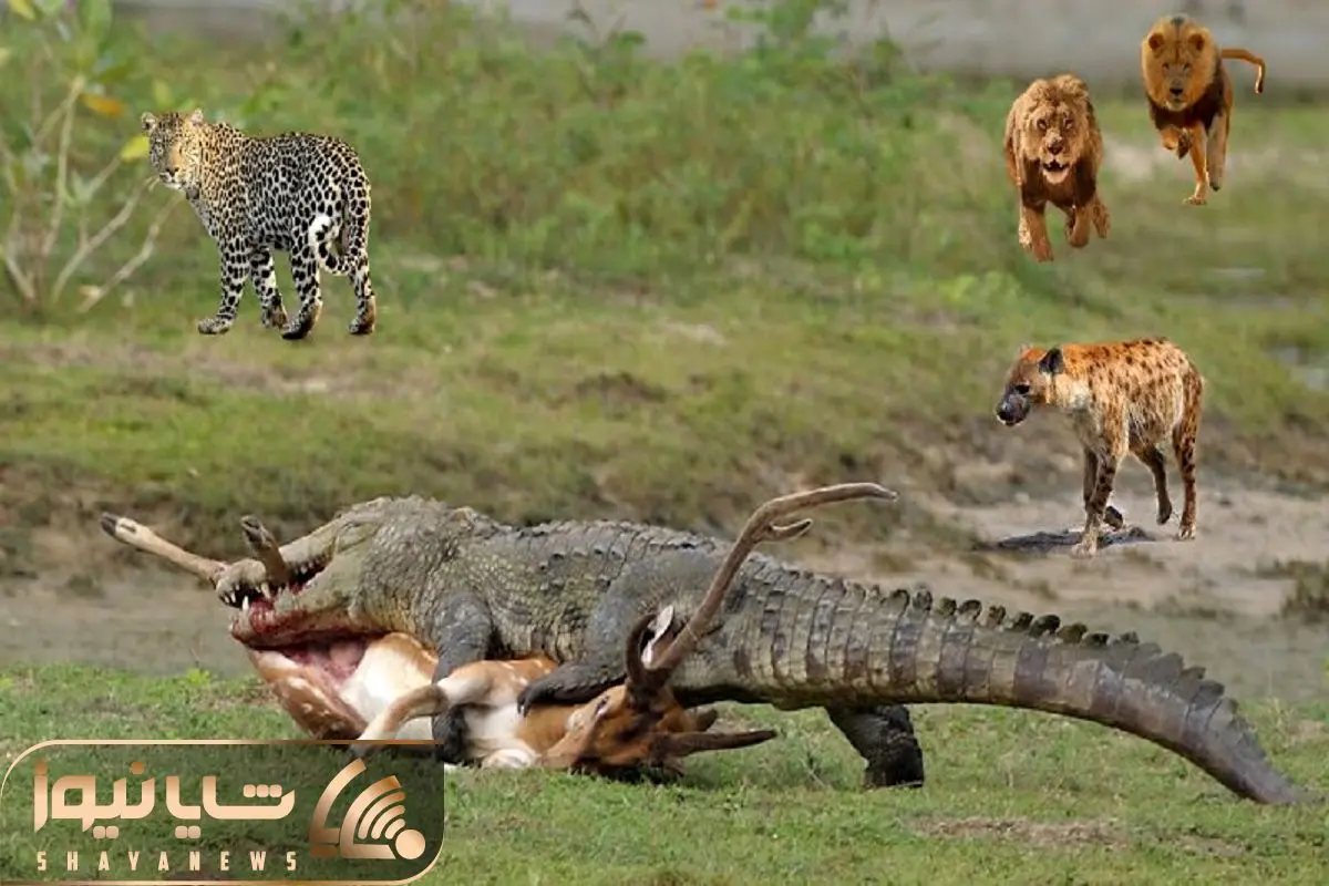 هنگامی که تمساح بی پروا به زمین می رود و با پادشاه شکارچیان برای طعمه رقابت می کند ، تمساح با پلنگ ، شیر و کفتارها چه خواهد شد؟