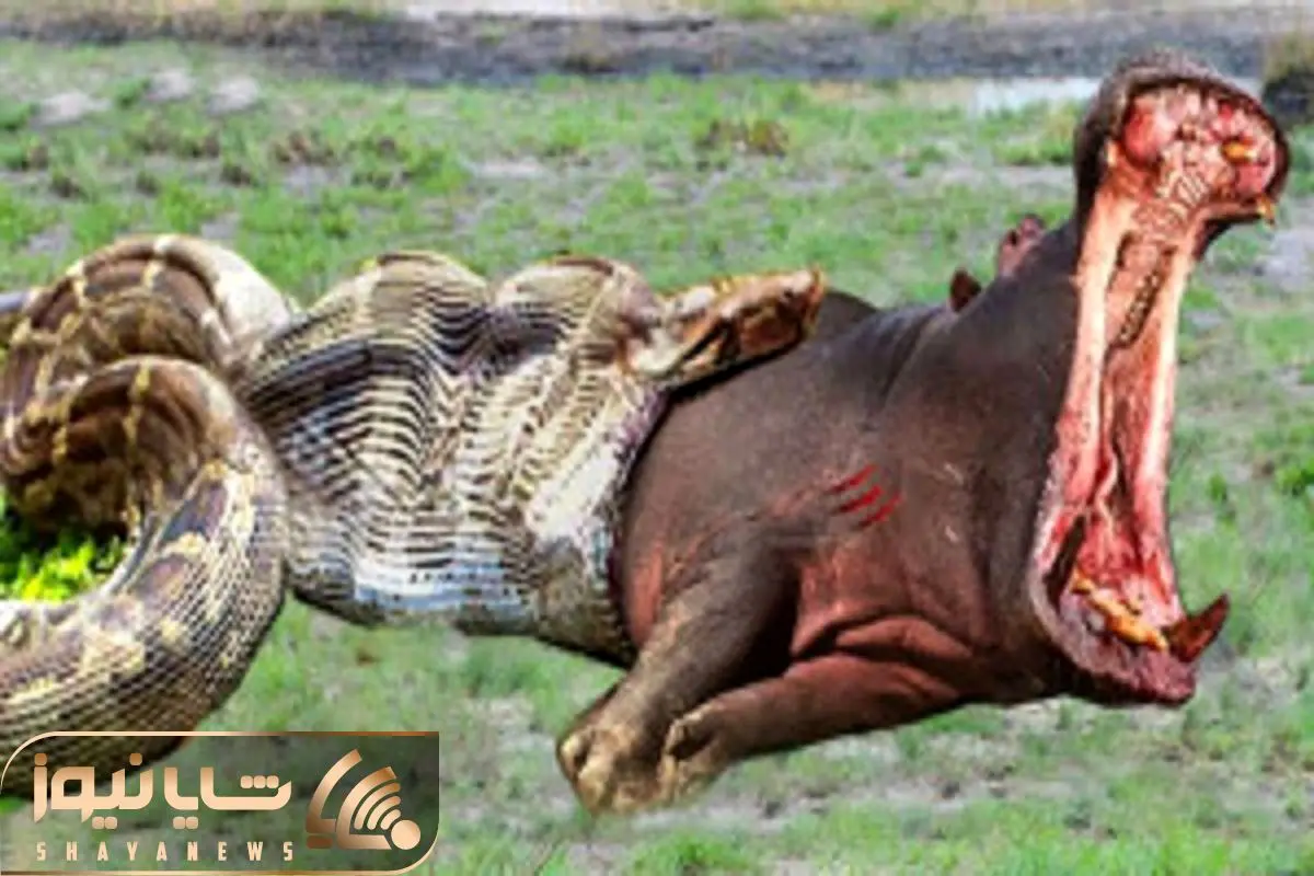 جذابیت حیات وحش / پیتون غول با خزیدن ناگهانی دور اسب آبی دهن گشاد زمین گیرش کرد