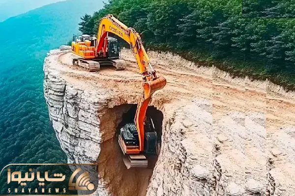 تجهیزات سنگین؛ بیل مکانیکی هوشمند در حال صاف کردن جاده مهلک غلتید ته دره