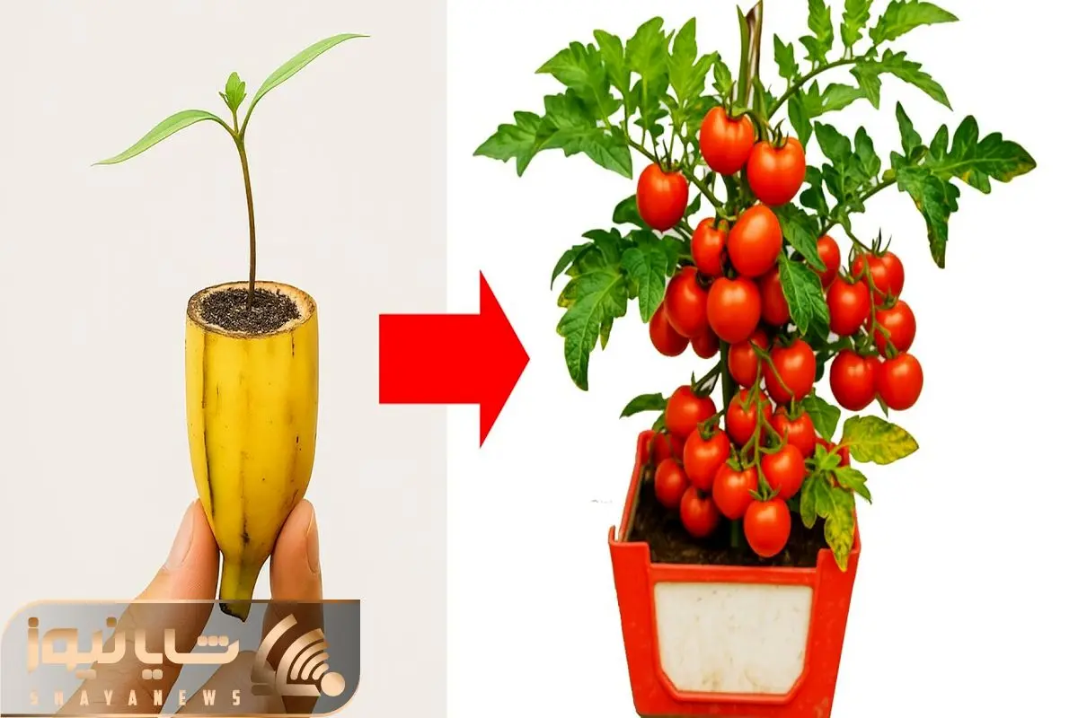 کشاورزی نوین؛ دونه های گوجه رو توی موز کاشته یه درختچه شده کلی گوجه ازش آویزون