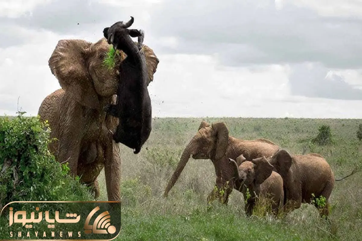 مستند حیات وحش / نبرد شرورانه فیل و بوفالو برای نشان دادن قدرت