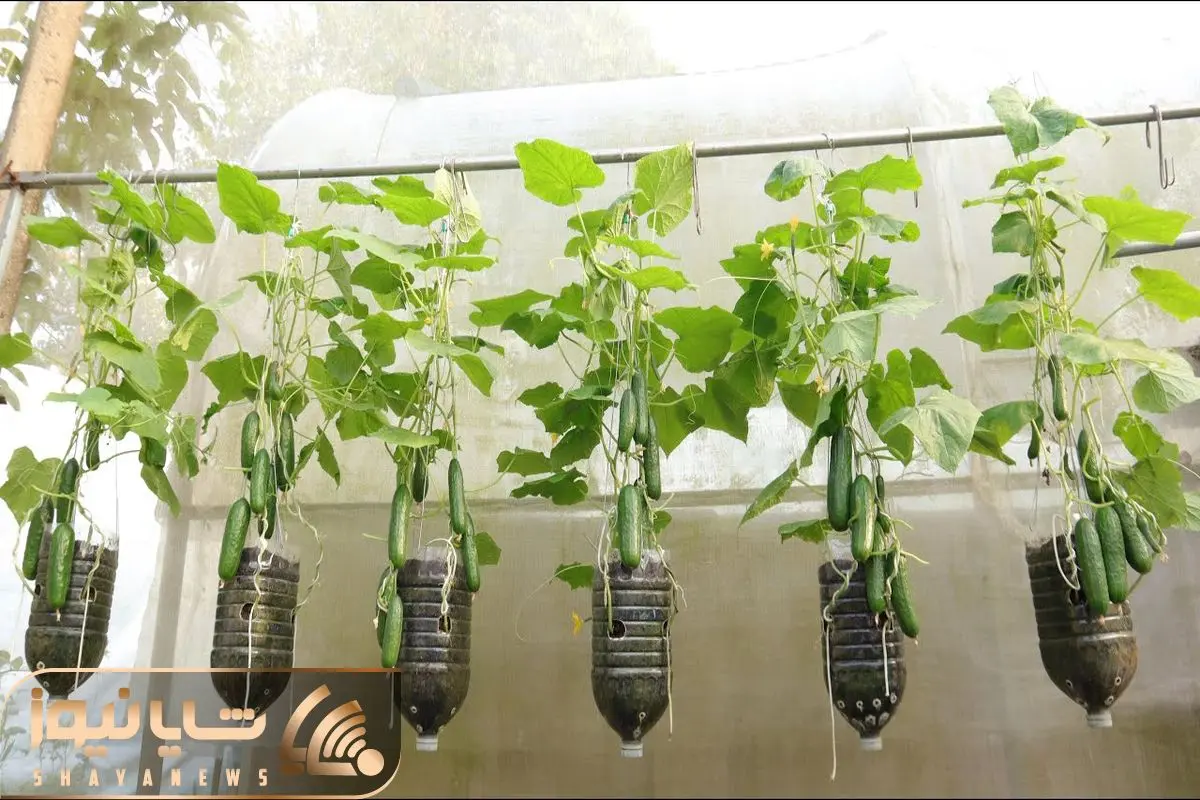 کاشت و برداشت خانگی؛ تو بطری آب معدنی خیار کاشته آویزون کرده کلی محصول داده