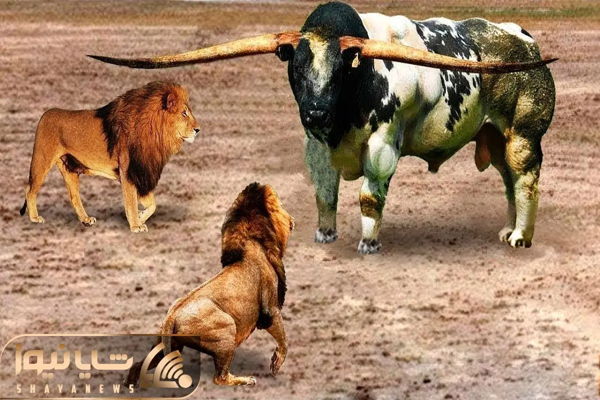 شاهکار حیات وحش / گاو باورنکردنی شیر و با شاخ دور سرش چرخوند پرت کرد لهیده شد