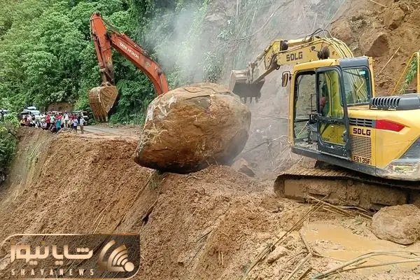 بیل های مکانیکی در جدالی سخت و نفس گیر سنگ های عظیم الجثه در کوه ها را جا به جا می کنند در حالی که مردم تماشگر صحنه هستند.