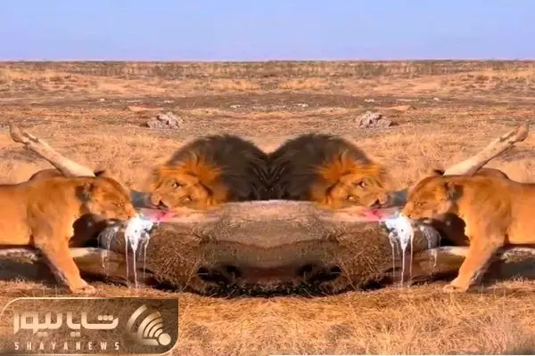 جذابیت حیات وحش؛ شرحه کردن بوفالو توسط شیرهای ددمنش برای نوشیدن شیر