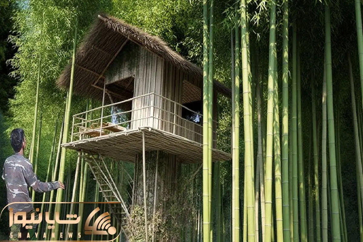 معماری خلاقانه؛ ساخت خانه چوبی بر بلندای بلندترین بامبو جنگل با تجهیزات کامل