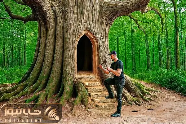 معماری خلاقانه / ساخت پناهگاه مخفی درون درخت غول با سوراخ کردن پیکره با پیکور