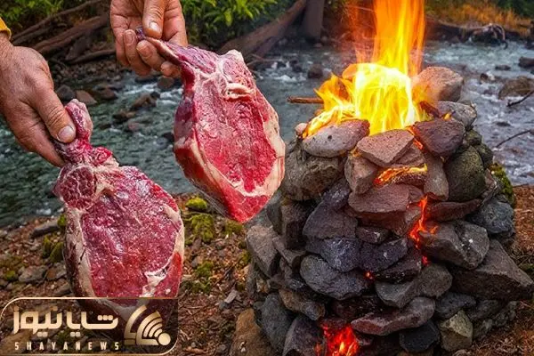 تماشا کنید که چگونه ما یک استیک آبدار و خوش طعم را فقط با استفاده از ابزار و مواد اولیه طبیعی آماده میکنیم!