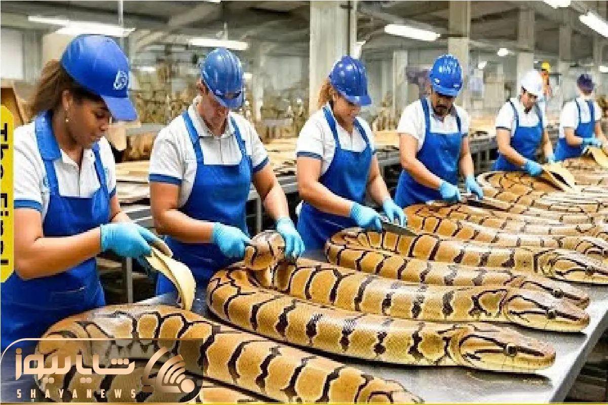 فرآوری مار؛ پوست مار ورقه ای جدا میکنه گوشتش سهم دیگ پوستش روانهی بازار