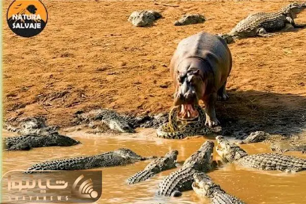 جذابیت حیات وحش / نبرد مفلوکانه تمساح با اسب آبی دهان گشاد برای خون فرزند