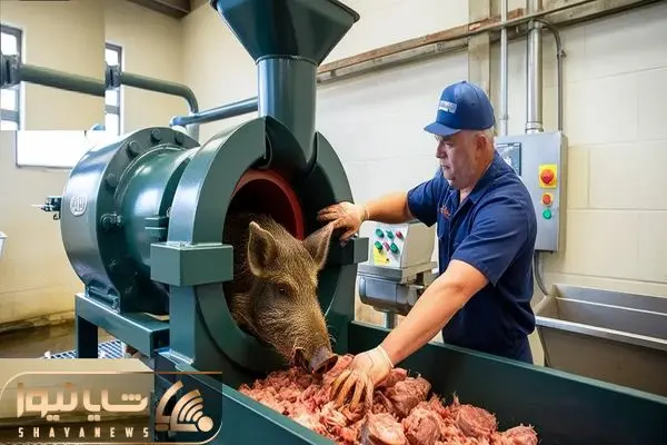 فرآوری خوک؛ خوک قلمبه حروم گوشت لجن شقه ای گذاشت تو دستگاه بیکن شه دودی