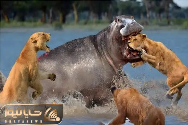 جذابیت حیات وحش / اسب آبی دهان گشاد به راحتی یک شیر را میکشد