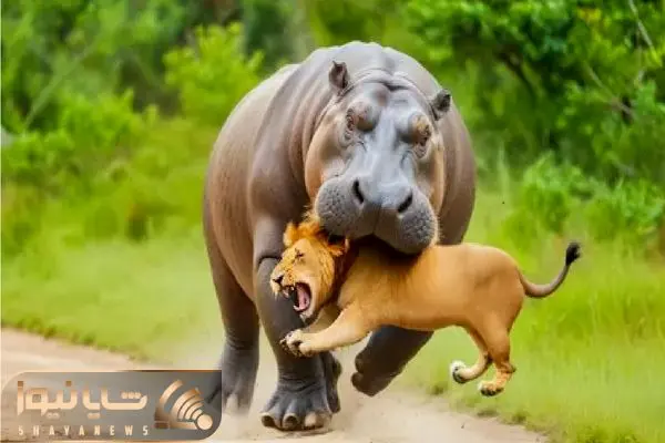 مستند حیات وحش/ بازی شیر با دم اسب آبی تخت شاهی اش را گرفت