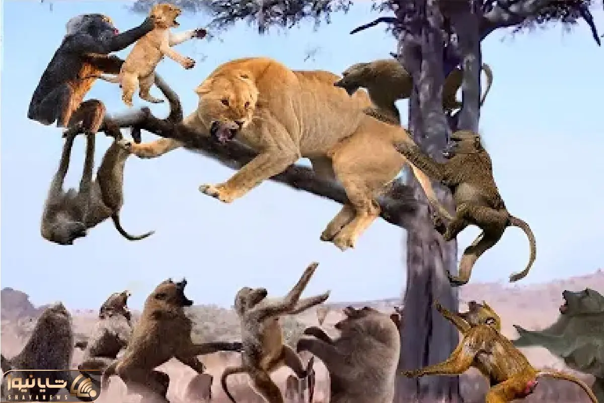 مستند حیات وحش / شیر زخم زد گله میمون ها خون بپا کردن