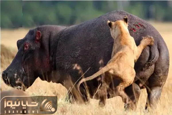 مستند حیات وحش / اسب آبی شیطون اومد با دم شیر بازی کنه نصفش رفت