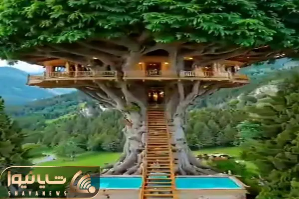 معماری خلاقانه؛ خونه ساختن بالای درخت تنومند همجوار ابرا پله اش انگار مرز دنیا و بهشت
