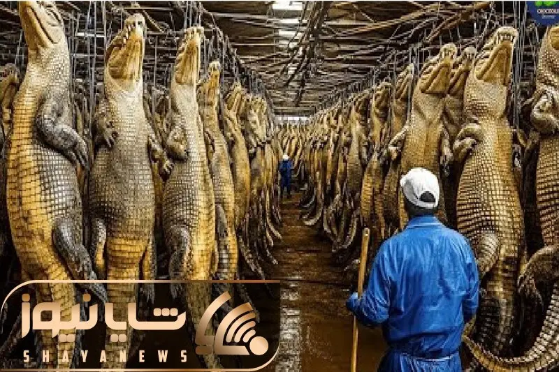 فرآوری تمساح؛ کیلو کیلو گوشت میریزن حلق تمساح پوستش در بیارن برا سود از دباغی