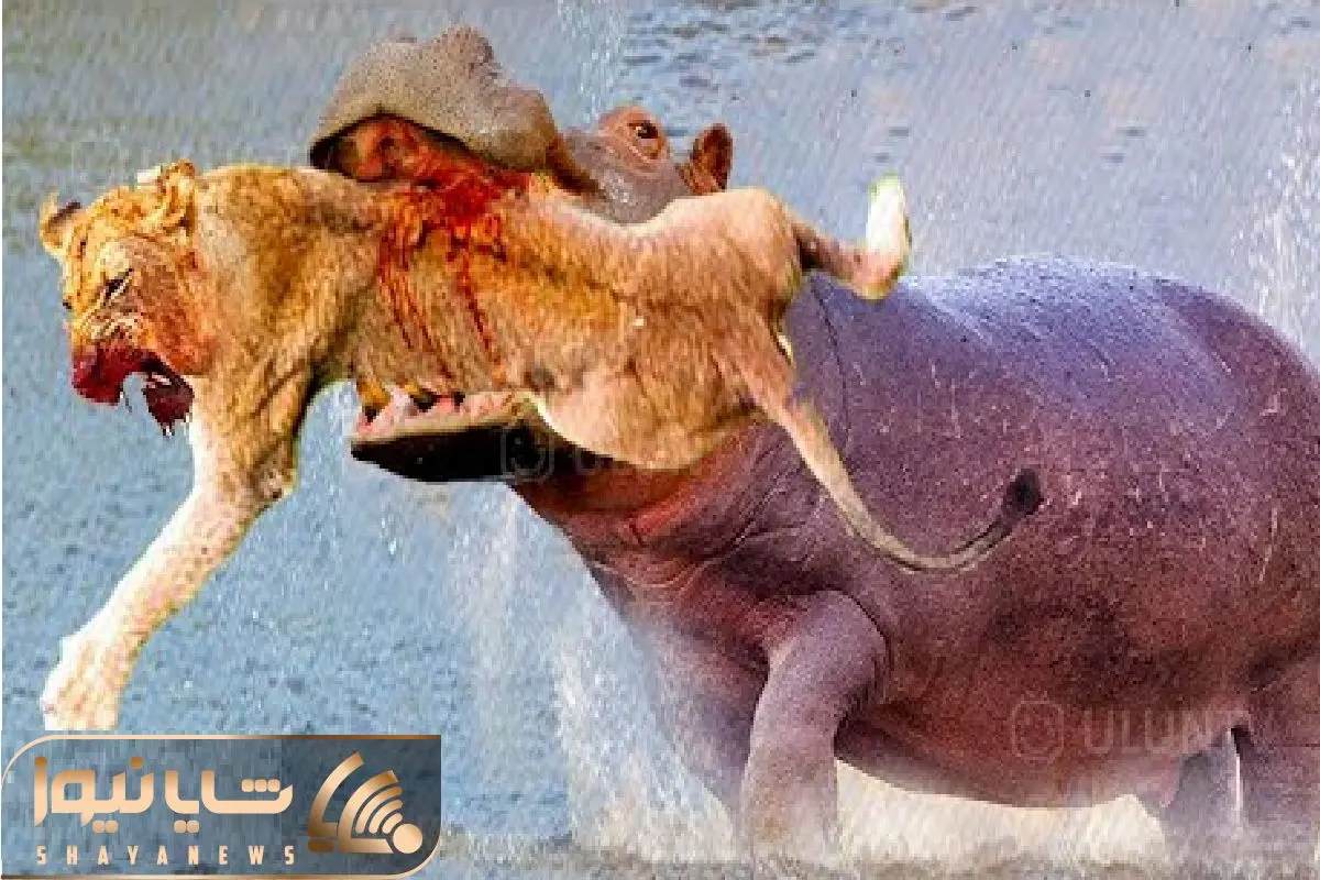 شاهکار حیات وحش / اسب آبی ردی شیر با اون عظمت کرد تو دهنش خورد خاکشیر شد