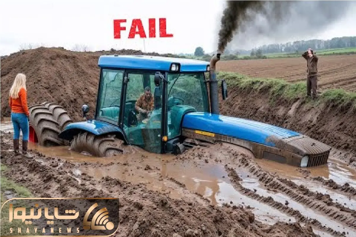 جا به جایی جانکاه؛ راننده تراکتور احمق انقد گاز داد تا رفت زیر گل