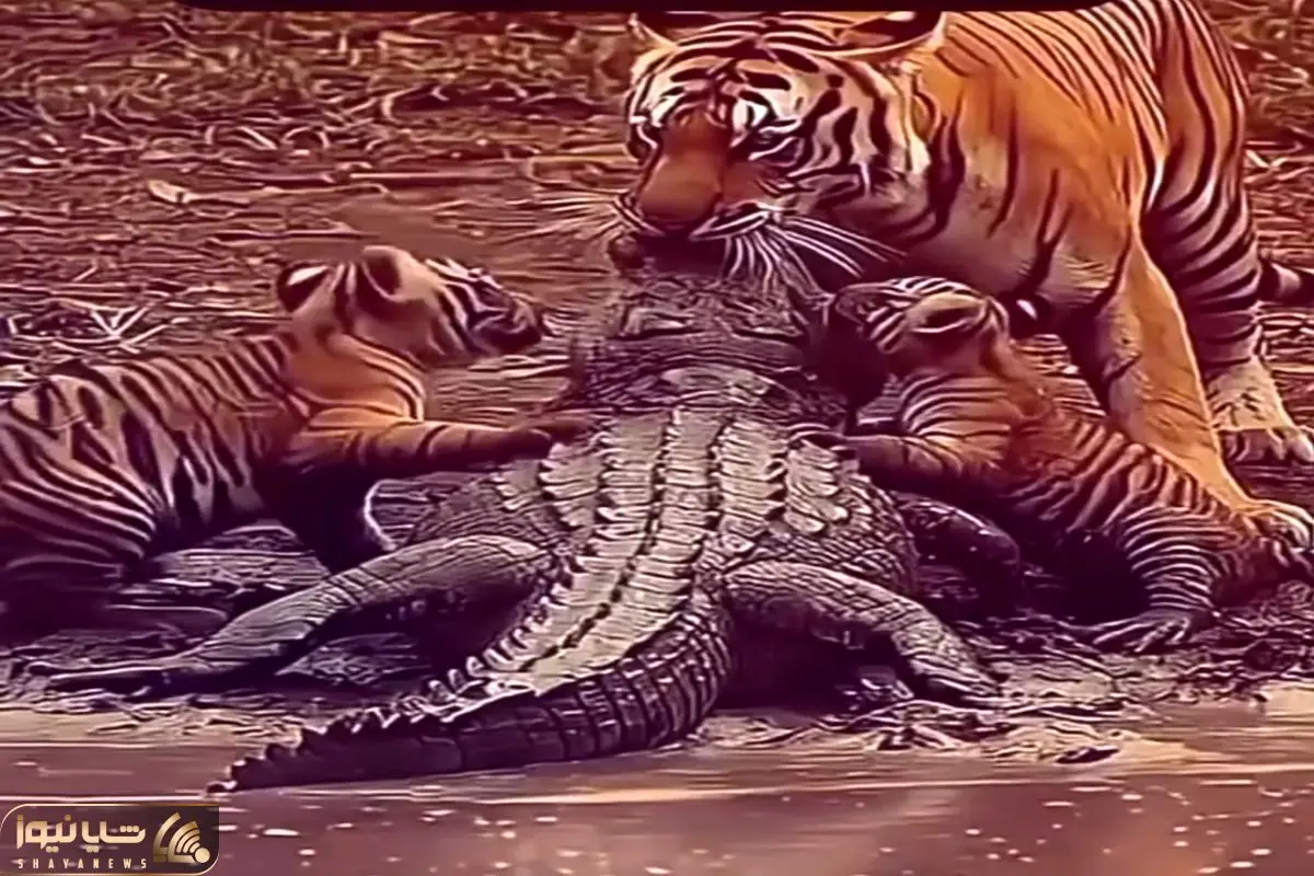 مستند حیات وحش؛ کروکودیل به بچه های ببر چپ نگاه کرد فاتحه ش خوندس جوری چپ و راستش کرد