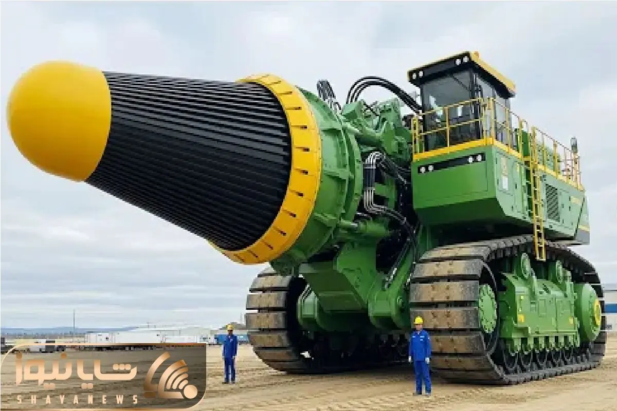 ابزارآلات غول پیکر؛ اپراتور بیل مکانیکی مته قلمبه نصب کرد زمین و زمان یکی کنه
