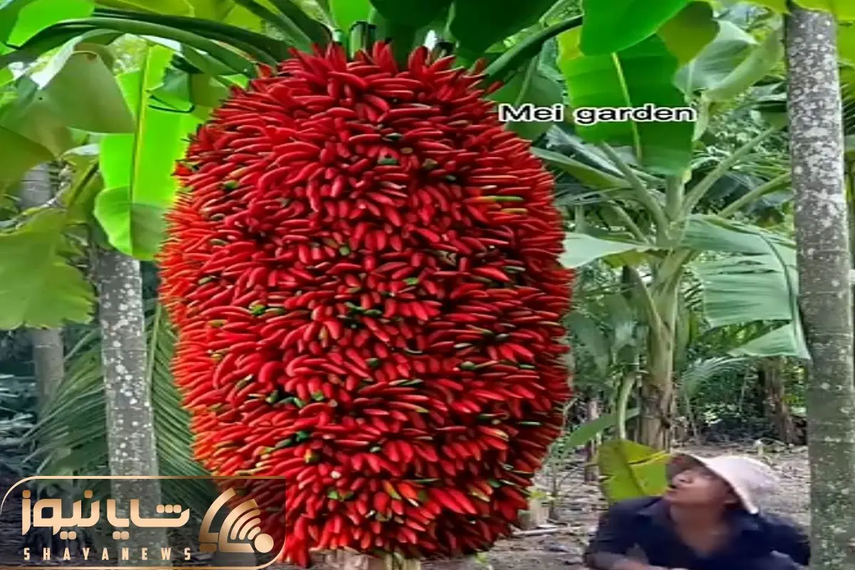 کشاورزی نوین؛ سر درخت موز رو بریدن توش فلفل کاشتن رشد کرد وسطش خوشه فلفل داد بالا موز