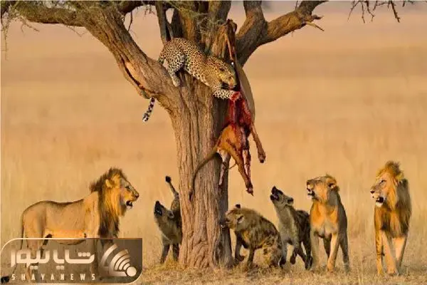 نارام زیان؛ جدال شرارتمندانه شیر و کفتارها با پلنگ برای لاشخوری از شکارش
