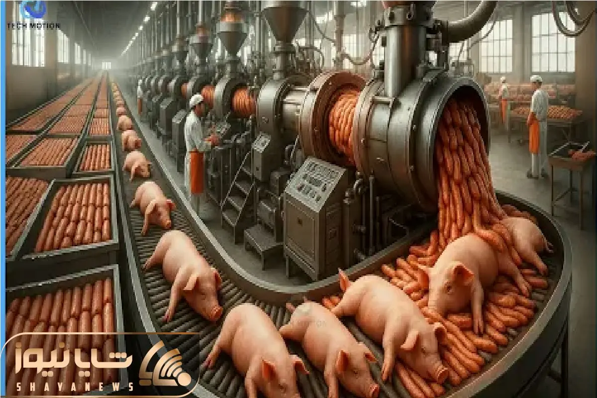 در این ویدیو مشاهده کنید که چگونه با ماشین آلات پیشرفته از 100000 خوک برای تولید سوسیس خوک با استفاده می شود.