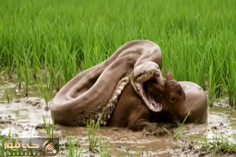 مستند حیات وحش؛ قدرت نمایی پیتون شرور در نبرد گوساله ریزجثه آبروریزی مطلق شد