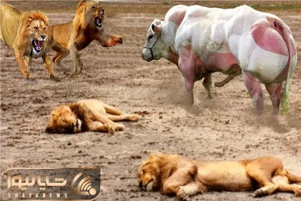 نبرد حیات وحش/ کی باورش میشه گاو نر بتونه در برابر شیرمقابله کنه اینبار گاوحمله ور شد