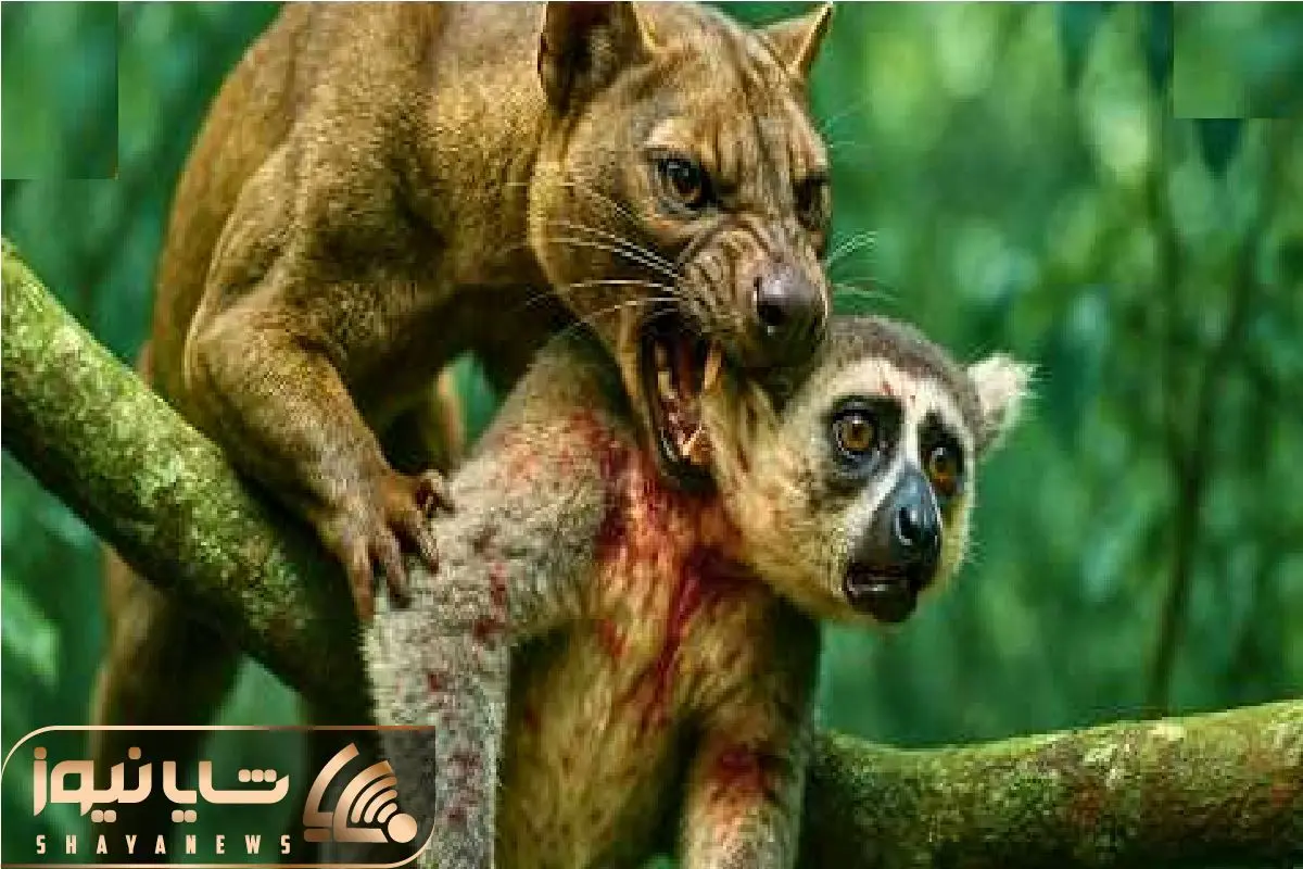 مستند حیات وحش / لمور دم‌حلقه‌ای در حال کرم رسانی بود که فوسا سفاک شاهرگشو زد
