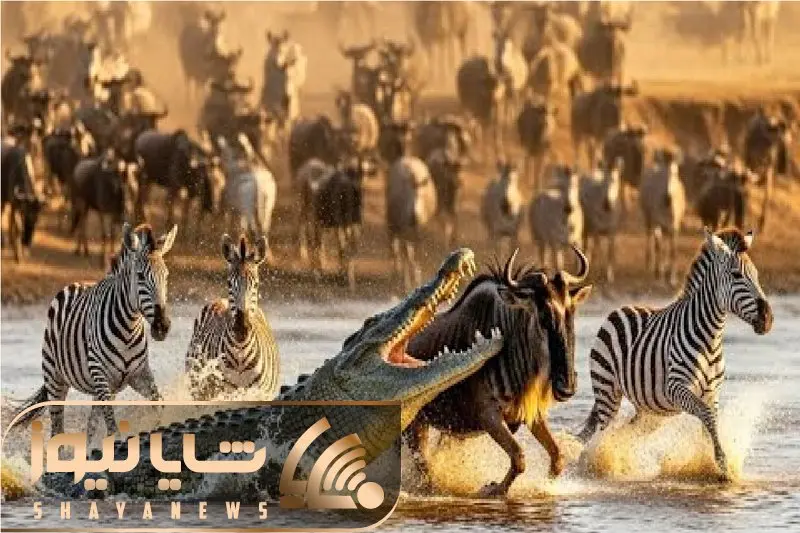حیات وحش بی رحم / تمساح آماده از کل یالدار تا خر راه راه جر داد رفت جلو