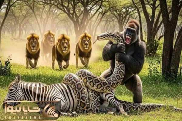 گوریل بدون ترس وارد میدان شد تا گورخر را از چنگال پیتون غولپیکر نجات دهد. اما واکنش گله شیرها همه را به حیرت وا داشت.
