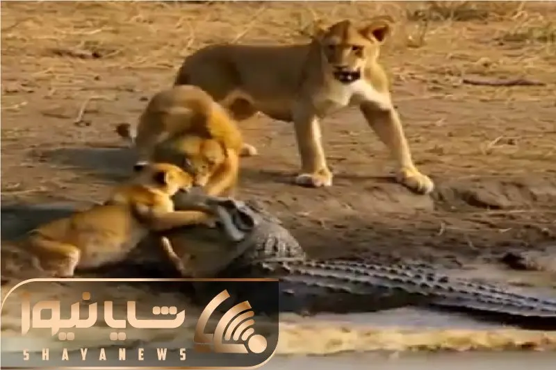 در این ویدیو که با کمک هوش مصنوعی تولید شده می بینید که شیر ها برای نجات فرزندشان از چنگ تمساح غول پیکر چه کارها که نمی کنند