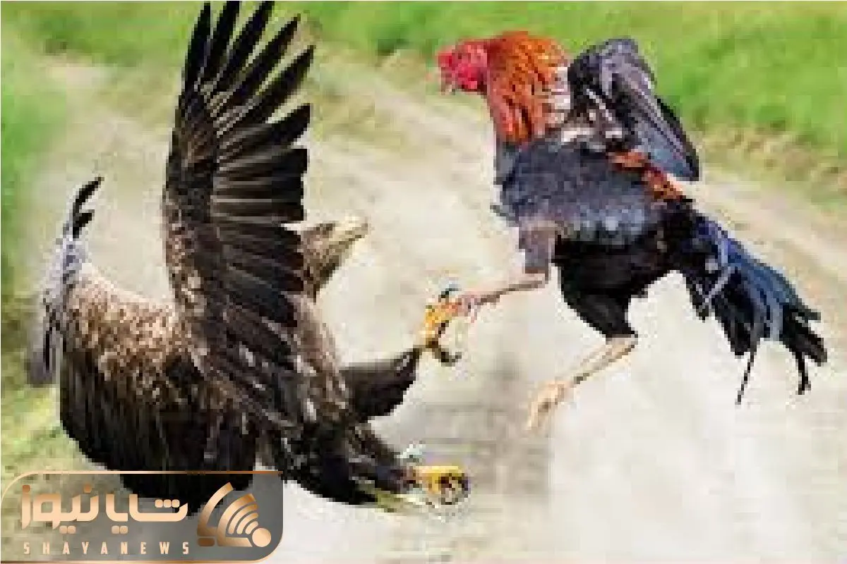 حمله‌ای از بالا، دفاعی از پایین؛ ماجرای عقابی که با نیت تجاوز به آشیانه خروس رفت اما خودش به دام افتاد.