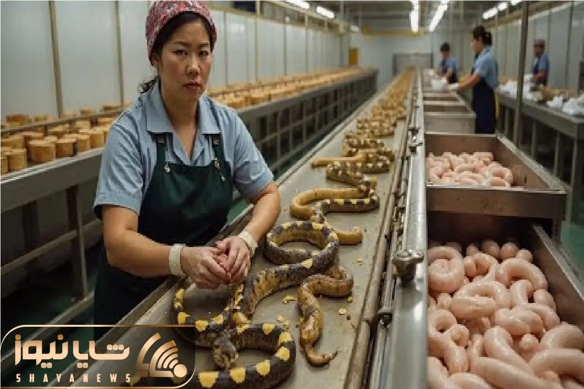 فرآوری مار؛ پوست مارهای رنگی و ورقه ای جدا میکنن برای کیف گوشتش میشه خورشت