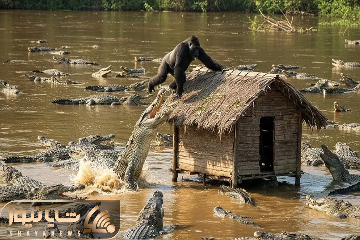 مستند حیات وحش؛ تسلط گوریل روی پشت بام بر تمساح های که مترصد سقوط هستن