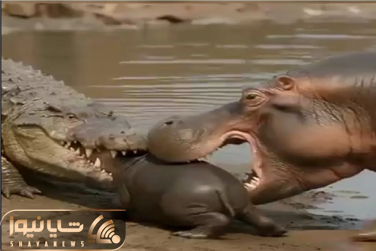 مستند حیات وحش؛ نجات اسب آبی از میان آرواره های تمساح با وساطت فیل