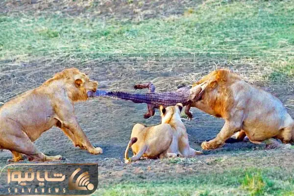 مستند حیات وحش؛ تلاش ۴ شیر برای تکه کردن یک کروکودیل زنده