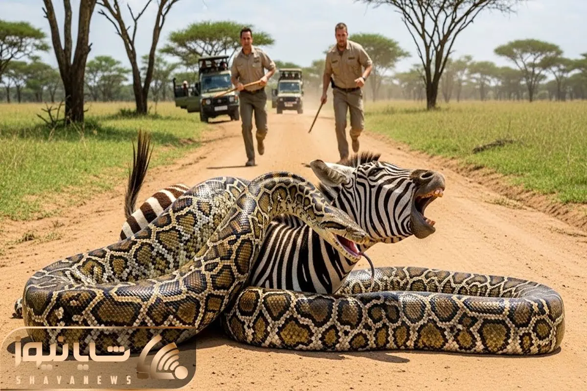 حیات وحش مصنوعی؛ گورخر شجاع برای نجات مادرش از دست پیتون غول پیکر کمک میاره